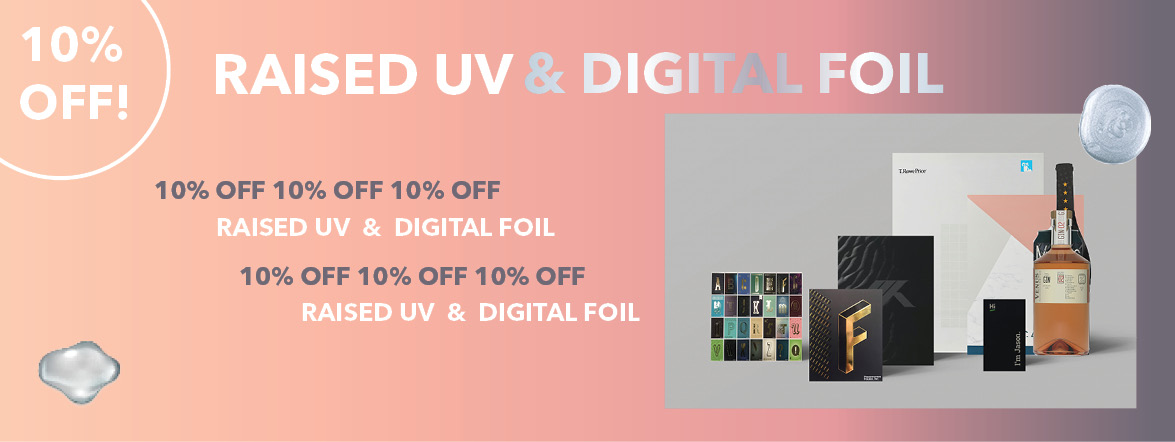 Custom folders, cards, and boxes printed with Raised UV & Digital Foil make for perfect marketing materials that need to stand out. Raised UV and Digital Foil coatings are the latest print digital enhancements developed from our Scodix Press.