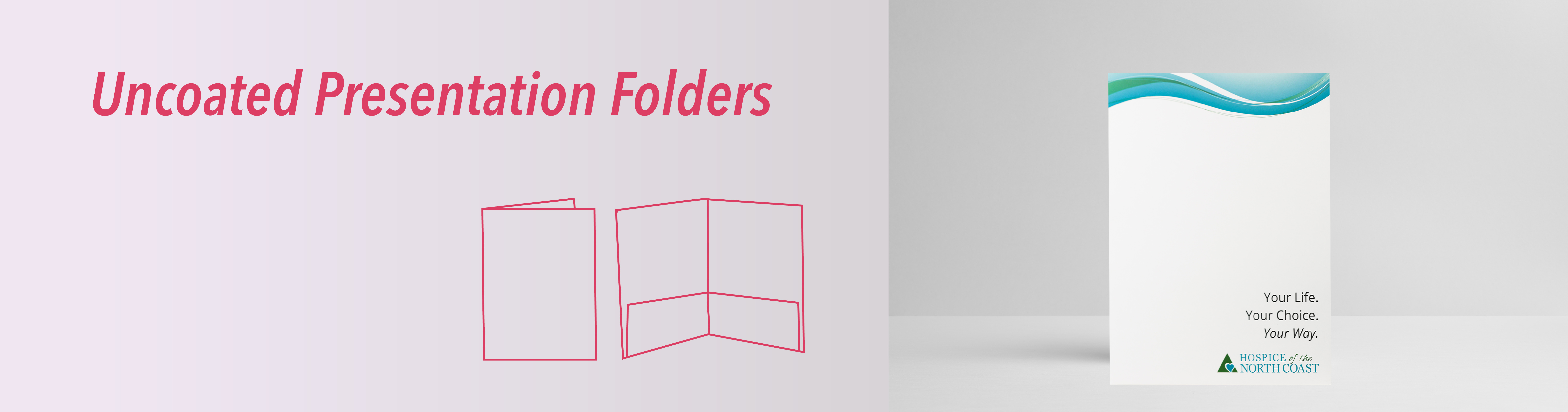 These custom folders are printed 4 color, 2 color, or 1 color on our Premium Uncoated paper stocks to create an elegant look.